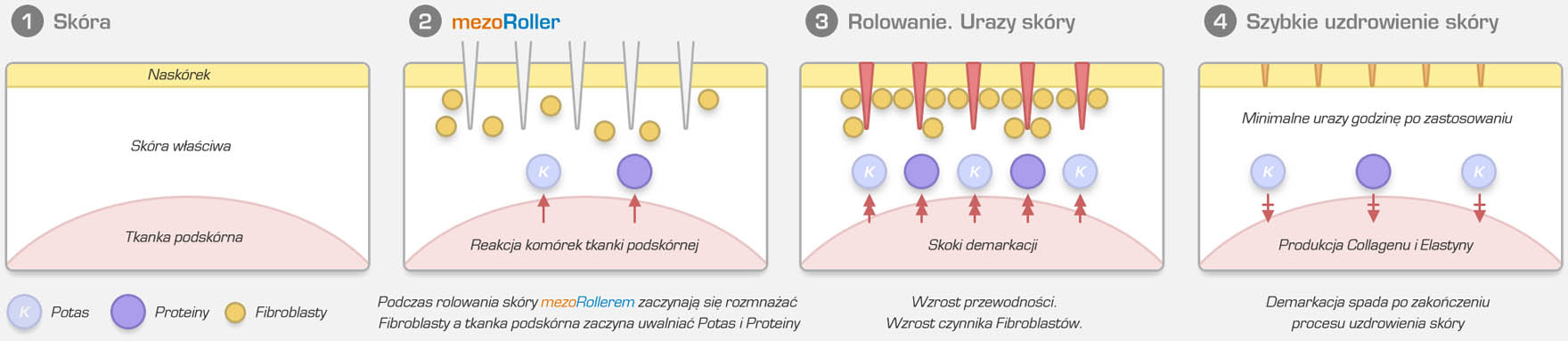 MezoRoller stosowany jest przy różnych problemach, nie tylko skórnych, podobnie jak klasyczna mezoterapia. W trakcie zabiegu po skórze przesuwany jest roller, który wytwarza co najmniej 500 000 kanalików w ciągu 10 minut. Zaczerwienienie i obrzęk ustępują w kilka godzin po zabiegu.